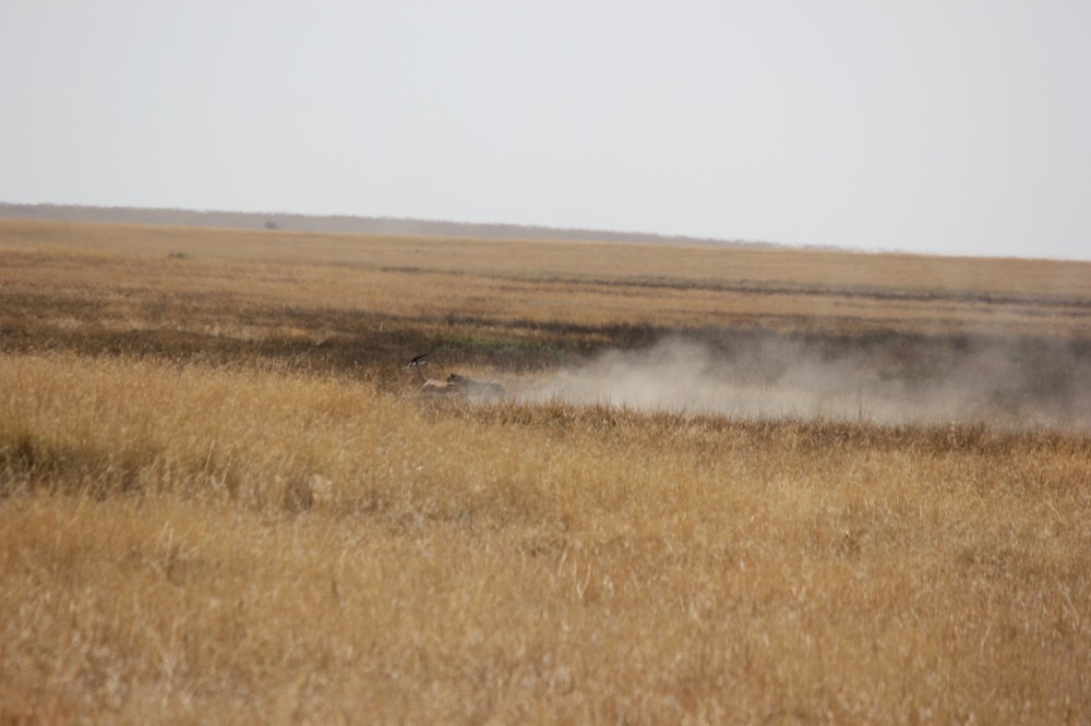 After spotting a well-known family of 4 cheetah, a mother and her 3 juvenile male offspring, our safari guide pulled over for us to take some pictures. Just seconds later, a single gazelle appeared to our left, and within the blink of an eye, the hunt was on!