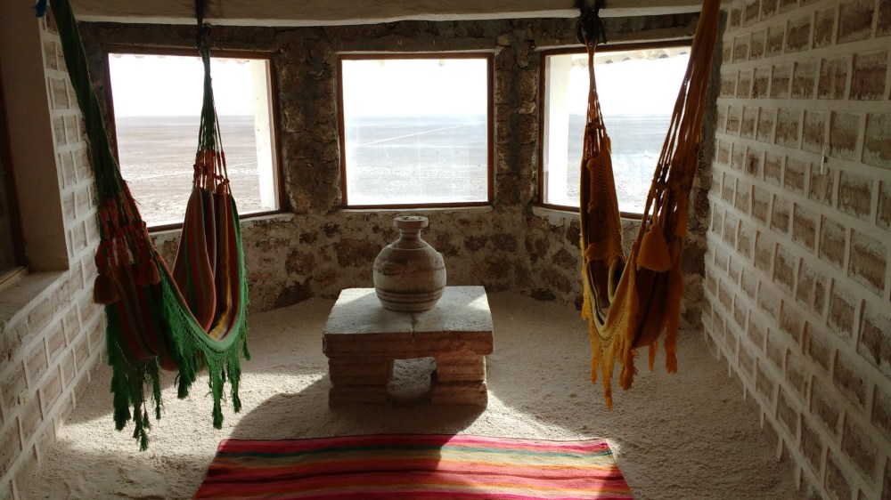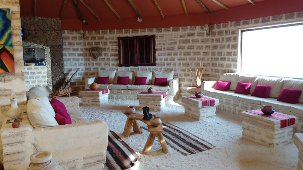 As it is quite a distance from the bustling town of Uyuni, where most budget travellers tend to stay, the Luna Salada Hotel is fully self-sufficient with a great restaurant, plenty of little nooks with comfortable seating areas and roaring open fires, a spa when one can indulge in a range of treatments, a TV room, a handicraft store, a bar, and even a whirlpool where you can relax after a long day exploring the surrounding area.